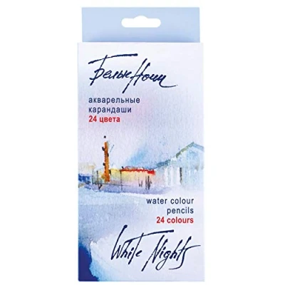 Honsell White Nights 80127 Watercolour Pencils Set of 24 in Cardboard Case, Wood Packed with High Colour Brilliance, Soft Spread, Water Soluble