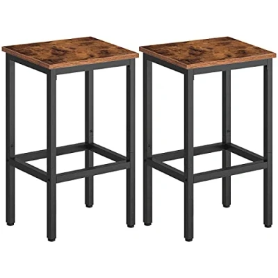 SET OF 2 RECTANGULAR BAR STOOLS: This set of bar stools is the perfect combination of industrial design and modern appeal, it can be integrated in any corner of dining room, kitchen etc. ENJOY SIMPLE LIFE: Mixed with E1 chipboard and black metal structure, the set of bar chairs offer excellent strength and comfort to prep food. Escape from the hustle and bustle and enjoy a cheerful moment with beloved partner MULTIFUNCTION: Two 40 x 30 x 65 cm bar stools pair with all standard size bar table or fit underneath kitchen counter when not in use and can be used as a footstool in restaurant, pub, cafe, patio for breakfast, drinks or coffee ADDED BONUS: Each stool comes with 4 adjustable leg levelers to maintain the overall stability even on uneven ground. In addition, it also has scratch proof and anti-skid functions to ensure the safety and floor protection ASSEMBLE EFFORTLESSLY: Each part is clearly labeled and the instruction manual is comprehensible to eliminate the guesswork. You won't go wrong