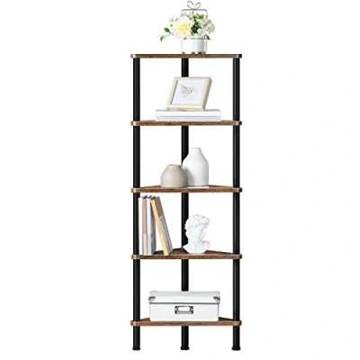 HOOBRO Corner Shelf, Storage Shelving Unit, Bookcase, 5 Tier Freestanding Bookcase for Living Room, Bedroom, Office, Rustic Brown EBF33CJ01
