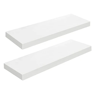 HOOBRO Floating Shelves, Wall Shelves Set of 2, Mounted Display Racks, Decorative Hanging Shelf, Wooden for Bathroom, Bedroom, Kitchen, Office, 60cm, White EWT60BJ01