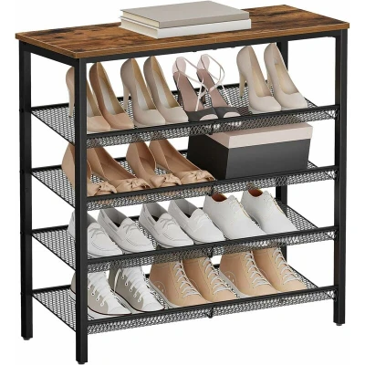 HOOBRO Shoe Rack, 5 Tier Organizer, Storage Rack for 16 20 Pairs, Adjustable Mesh Shelves, Unit Entryway, Metal Frame, Sturdy, Industrial, Rustic Brown EBF12XJ01