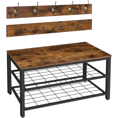 HOOBRO Shoe Rack with Coat Hanger, Hall Tree, Hallway Bench Set 9 Hooks and Shelf, Stands, Stand for Entryway, Sturdy, Industrial, Rustic Brown EBF07MT01