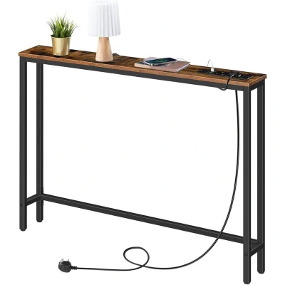 HOOBRO Slim Console Table with Charging Station, Hallway USB Ports and Power Outlets, 100 cm Long, Narrow Sofa/Behind Couch for Entryway, Small Spaces, Rustic Brown EBF51KXG01
