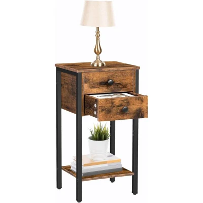 HOOBRO Tall Bedside Table, Slim Side Table with 2 Drawers, Industrial Telephone Small Hallway for Spaces, Living Room, 35 x 28.5 68.5 cm, Rustic Brown and Black EBF72BZ01