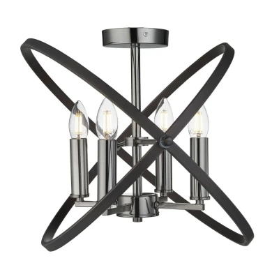Hoopla 4 Light Semi Flush Pewter, Black, E14