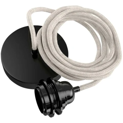 Hoopzi Pendant Light 1 Bulb 2,5m Linen Cable Chandelier for Living Room, Kitchen, Bedroom Model Hang Natural Black Pavilion