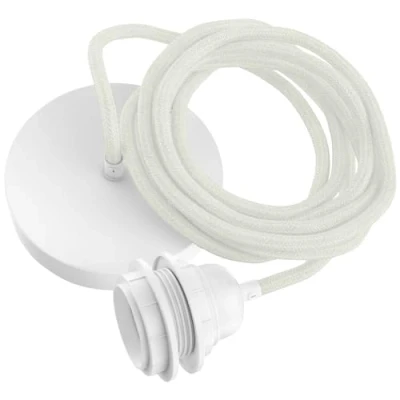 Hoopzi Pendant Light 1 Bulb 2,5m Linen Cable Chandelier for Living Room, Kitchen, Bedroom Model Hang White