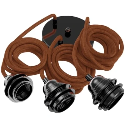 🌟 MODERN AND INTEMPORAL DESIGN: A subtle blend of steel and woven electrical cable with elegant and refined lines. This chandelier is ideal for use in living room, kitchen, bedroom or office. This pendant light comes without bulb 💡 CHOOSE YOUR STYLE: Chic and modern by combining it with 3 E27 LED bulbs. Or retro vintage atmosphere by choosing 3 beautiful Edison bulbs. 📏 USE ACCESSORIES: With or without a lampshade, it is up to you. Design your industrial chandelier by choosing from the 8 colours of Cages Hoopzi Originality and Whaou effect guaranteed. Modulable: cut off the 2.5 metre long cables to adjust the desired light height, or use the option to move your light points anywhere you want with the 3 included silicone hooks on the ceiling. 🐓 FRENCH QUALITY TOUCH: All our products are certified by 2 independent French organizations, Veritas and Pourquery, according to the strictest lighting standards.