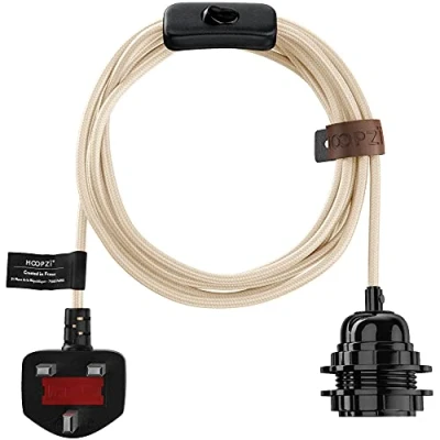 Hoopzi Plug in Pendant Light to Up Your Home 4.5M Fabric Electrical Cable E27 Bulb Holder with Switch Create Own Light, Portable Lamp, Hanging Lamp BalaSand