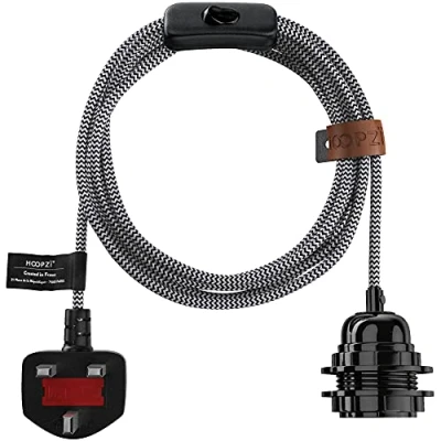 Hoopzi Plug in Pendant Light to Up Your Home 4.5M Fabric Electrical Cable E27 Bulb Holder with Switch Create Own Light, Portable Lamp, Hanging Lamp BalaZigzag White Black