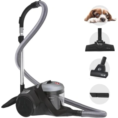 IDEAL FOR PET OWNERS: This cylinder vacuum cleaner comes with a mini turbo brush to help remove stubborn pet hairs from cushions, sofas and carpets. Rotating bristles penetrate deeply to loosen fur - a great hoover for cat and dog owners. LONG REACH: With its 1.5m stretch hose plus 2.5m add on hose this bagless cylinder vacuum cleaner is capable of reaching the top of a standard 13-step staircase. It also has a generous 6.5m cable length allowing you to reach further without changing power sockets. CONVENIENCE: This corded vaccum weighs under 5kg, making it easy to carry upstairs and store after use. Thoughtful features include the auto-cable rewind, telescopic extending tubes and a slot to store the 2-in-1 accessory neatly onboard. LARGE CAPACITY: This cyclonic vacuum cleaner features a generous 2 litre bin meaning you can vacuum for longer without emptying it. It is easy to empty with a one click release for convenience. HIGHLY VERSATILE: This vacuum comes complete with a 2-in-1 dusting brush and crevice tool, allowing you to switch between different functions in an instant. CARRY HANDLE: The retractable and robust carrying handle on this compact yet powerful vacuum cleaner makes it convenient to carry anywhere and store easily. 3 YEAR WARRANTY: Peace of mind with a free warranty up to 3 years. Subject to registration within 30 days from purchase. Terms and conditions apply., Weight: 9.92080179 Pounds, Manufacturer: Hoover