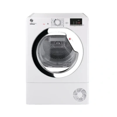 9kg Load Capacity: Ideal for families, accommodating substantial laundry loads in one cycle, saving time and energy. A++ Energy Rating: Highly energy-efficient design helps lower utility bills while maintaining excellent drying performance. Sensor Dry Technology: Automatically detects moisture levels and stops the cycle when optimal dryness is achieved to prevent over-drying. 15 Drying Programmes: Offers a variety of settings tailored for different fabric types, ensuring optimal care for every load. Refresh Steam Programme: Uses steam to effectively freshen up lightly worn clothes without the need for a full wash cycle. WiFi Connectivity: Remotely start, pause, or monitor your drying cycles through the Hoover Wizard app for added convenience. Aquavision Water Container: Clear viewing window on the in-door water tank allows for easy monitoring and removal for emptying.