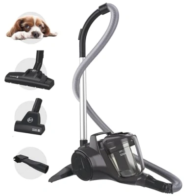 PET HAIR TOOL: This lightweight cylinder vacuum's mini turbo pet nozzle helps to easily remove pet hair from sofas, beds, chairs and carpets. ULTRA COMPACT DESIGN: This household vacuum cleaner allows you to easily store and manoeuvre due to being lightweight and compact. LARGE 2L BIN CAPACITY: Clean for longer without the need to empty the bin with this small cylinder vacuum cleaner. NEVER LOSE THE ACCESSORIES: The integrated 2-in-1 accessory on this portable corded vacuum cleaner combines a crevice tool and dusting brush. SUITABLE FOR ALL FLOOR TYPES: This compact cylinder vacuum cleaner is ideal to clean & vacuum rugs, carpets, hard floors, upholstery and car interiors., Weight: 9.038952742 pounds, Manufacturer: Hoover