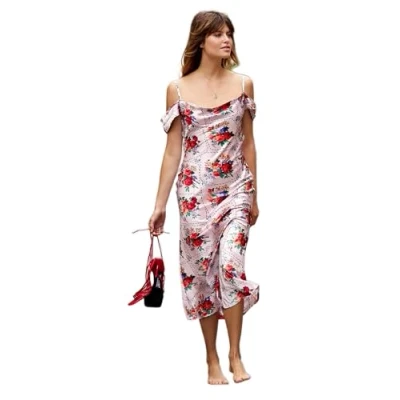 Hope & Ivy Womens The Valetta Cowl Front Satin Midi with Cami Strap and Pleated Bardot Sleeve Special Occasion Dress, Pink, 12 UK