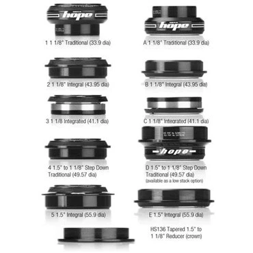 As you might have worked out by now, headsets are a bit of a minefield! Integrated, integral, reducers, dimensions and types all contribute to confusing the situation. Don’t panic! We have now made top and bottom cups available separately allowing our headsets to fit almost any frame and fork combination. Hopefully this brochure will help you through choosing the right headset for your bike.A couple of things to remember though - we don’t necessarily do a headset to fit your bike! We have 4 ‘off the shelf’ combinations and a further 18 ‘Pick n Mix’ options. There are other styles, types and fittings out there. The first thing to remember is that you need accurate dimensions if you are at all unsure of what type you need.The second point to remember is that unfortunately there is no ‘standard’ - OK, we have the dimension 1 1/8 inch, which covers the majority of headsets now, but as far as Integral, integrated etc... these are simply terms used by different manufacturers to determine what they consider that style to be. Measure, check and measure again!One thing that is common throughout our range is the quality of materials used to manufacture them, here in our Barnoldswick Factory, the quality of the custom made stainless steel bearings and the time taken to hand assemble each and every one before it leaves, on it’s way to you!Our traditional headset is made to fit standard frames and 1 1/8 inch fork steerers. They include custom made stainless steel bearings (which are replaceable). The cups, taper ring and crown race (which is split for easy installation and removal) are all machined from 2014 T6 aluminium.The integral headset is made to fit low stack 1 1/8 inch frames (please check drawings for exact sizing). They include custom made stainless steel bearings (which are replaceable). The cups, taper ring and crown race (which is split for easy installation and removal) are all machined from 2014 T6 aluminium.The integrated headset is made to fit in 1 1/8 inch frames where the bearings fit directly into the frame. They include custom made stainless steel bearings (which are replaceable). The taper ring and crown race (which is split for easy installation and removal) are all machined from 2014 T6 aluminium.The tapered headset is designed to fit frames which are sized to accept integral 1 1/8 inch top cup and 1.5 inch integral bottom cups, where the fork steerer has a 1.5 crown and a 1 1/8 inch top. It is also possible to fit a standard 1 1/8 inch steerer using an additional conversion crown. The headsets include custom made stainless steel bearings (which are replaceable).The cups, taper ring and crown race (which is split for easy installation and removal) are all machined from 2014 T6 aluminium. All off the shelf headsets come complete with the Hed Doctor. Sealing is achieved through an adjustable taper ring cover and integrated rubber seal.The bearings also incorporate their own sealing, and being made from stainless steel to resist corrosion - a real advantage over a conventional steel bearing.