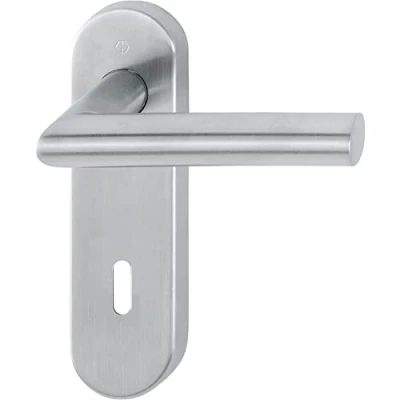 HOPPE 10720706 Stainless Steel Matt Object Handle Set Amsterdam on Short Plate PZ