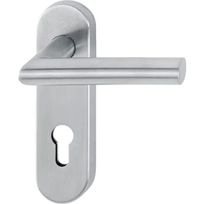 HOPPE 10722509, matt Stainless Steel fire Protection Handle Set Amsterdam on Short Plate PZ