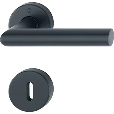 The handle set is made of robust and durable stainless steel and impresses with a black matte surface The door handle sits comfortably in the hand and allows for comfortable opening and closing of the door The innovative Hoppe quick-pin technology allows quick and easy installation of the door handles Rosette BB: diameter 52 x 8 mm, square quick pin: 8 mm loose with A-sleeve to 8.5 mm, door thickness: 37 - 42 mm Box contents: "Amsterdam" handle set - 2x door handles on round rosette 2x rosette BB stainless steel black matt, Weight: 1.10231131 Pounds, Manufacturer: HOPPE