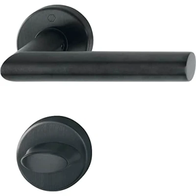 The handle set is made of robust and durable stainless steel and impresses with a black matte surface The door handle sits comfortably in the hand and allows for comfortable opening and closing of the door The innovative Hoppe quick-pin technology allows quick and easy installation of the door handles Rosette toilet: diameter 52 x 8 mm, square quick pin: 8 mm loose with A-sleeve to 8.5 mm, door thickness: 37 - 42 mm Box contents: "Amsterdam" handle set - 2x door handles on round rosette 2x rosette toilet, stainless steel black matt, Weight: 1.212542441 Pounds, Manufacturer: HOPPE