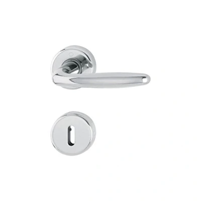 HOPPE 3066849 Roissy Handle Round Rosette Plated Brass Silver Shiny Deadlock 1 Complete Set, Polished Chrome Finish