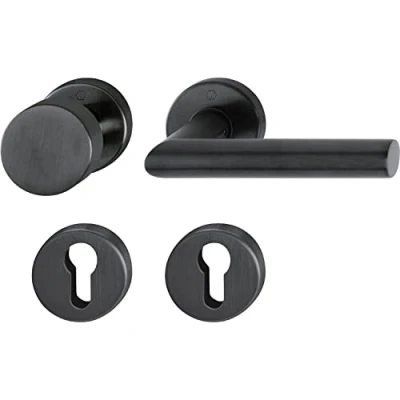 HOPPE Amsterdam Door Handle and Knob Fixed on Round Rosette PZ for Thickness 40 45 mm Stainless Steel Matte Black