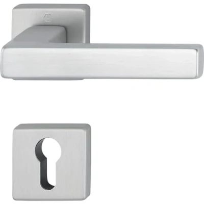 This handle set is made from strong and durable aluminium Door handle with innovative return spring - guarantees that the handle set does not wear out even after years The door handle provides a comfortable grip and allows for comfortable opening and closing of the door Rosette PZ: 49 x 49 x 9 mm, door thickness: 37 - 42 mm, square pin quick pin: 8 fixed with attachment sleeve to 8.5 mm Box contents: Austin handle set, 2 x door handles on rosette and 2 x rosette PZ, aluminium stainless steel effect matt, Weight: 1.16624536598 Pounds, Manufacturer: HOPPE