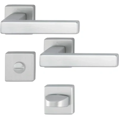 This handle set is made from strong and durable aluminium Door handle with innovative return spring - guarantees that the handle set does not wear out even after years The door handle provides a comfortable grip and allows for comfortable opening and closing of the door Rosette toilet: 49 x 49 x 9 mm, door thickness: 37 - 42 mm, square pin quick pin: 8 fixed with attachment sleeve to 8.5 mm Box contents: Austin handle set, 2 x door handles on rosette and 2 x rosette toilet, aluminium stainless steel effect matt, Weight: 1.39332149584 Pounds, Manufacturer: HOPPE
