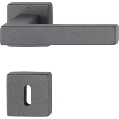 Elegant design: the Austin handle set impresses with its clear textured lines and impresses with its elegant design - ideal for living rooms Innovative installation: equipped with the Hoppe quick pin Plus, this handle set can be mounted screwless and quickly Specifications: design: with return spring, maintenance-free plain bearing | rosette: 49 x 49 x 9 mm | square pin: 8 fixed quick pin with A-sleeve to 8.5 mm | tested according to standard: class according to EN 1906 - 3 | mounting accessories: multi-purpose screws | door thickness: 37 - 42 mm | holes: BB Box contents: 1 GT HOPPE Austin handle set, 2 x door handles on rosette BB, TS 37-42 mm, aluminium sand black, Weight: 1.1904962148 Pounds, Manufacturer: HOPPE