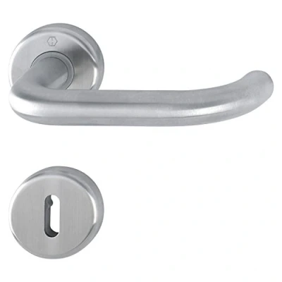High-quality stainless steel: the HOPPE handle set in matt authority shape impresses with its elegant look and high corrosion resistance Secure installation: fixed/hole part connection with worm screw and self-tapping screws ensures a stable fit on doors with a thickness of 42-47 mm Classic design: with round rosette and BB perforation, ideal for modern living and object areas - durable, functional and easy to assemble Specifications: square pin: 8 fixed with A-sleeve to 8.5 mm, door thickness: 42 - 47 mm, class according to EN 1906: 2, rosette: diameter 52 x 9 mm, design: with return spring and plastic substructure Box contents: 1 x Hoppe bathroom door handle set with rosettes BB, TS 42-47 mm, matt stainless steel, Weight: 1.2456117803 pounds, Manufacturer: HOPPE