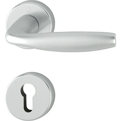 Hoppe House Door FH Handle Set Silver Anodised Aluminium for Internal Doors Thickness 40 Key 45 mm New York, Rundrosette PZ