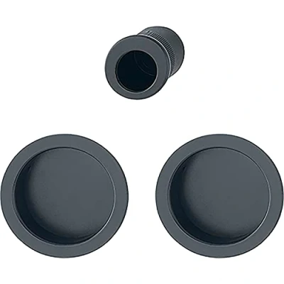 HOPPE Sliding Door Handle Set of 2 Blind Rosette BL Round with Star Pull Aluminium Black Matt