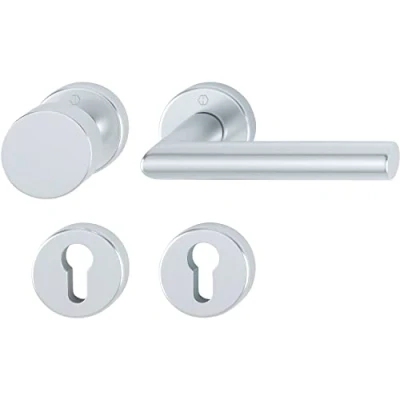 Modern handle set made from robust and durable aluminium The Stockholm handle set is equipped with an innovative quick pin, which allows quick and easy installation The door handle and the door knob provide a comfortable grip Rosette: diameter 52 x 9 mm, door thickness: 37 - 47 mm, class according to EN 1906: 3, design: door handle with return spring, square pin (quick pin): 8 with A-sleeve to 8.5 mm Box contents: 1 x door handle on rosette, 1 x door knob on rosette, 2 x rosette PZ, quick pin (square pin), mounting accessories, Weight: 1.09790206476 Pounds, Manufacturer: HOPPE