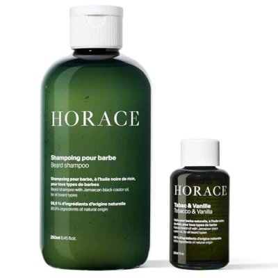 HORACE Beard Care Set for Men Shampoo (250 ml) + Tobacco & Vanilla Oil (30 Gentle Cleanse Nourishment, Woody Sweet Scent