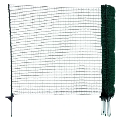 Keep your pets safe, protect your garden, and create secure boundaries with this small mesh net. Designed for easy setup and stability, this 20m long and 90cm high fence is perfect for gardens, campsites, and small enclosures. Key Features * Ideal for securing flower beds, vegetable patches, ponds, or freshly sown lawns. Also great for fencing in small animals like dogs, cats, and poultry. * Equipped with 12 integrated fiberglass stakes (one every 1.81m) and 10cm individual spikes for enhanced durability. * Small 17x17mm mesh spacing ensures stability and prevents animals from squeezing through. * Integrated step allows effortless post insertion into the ground, making setup and dismantling simple and efficient. * Can be moved and reassembled in minutes, making it a great temporary fencing solution. Note: This fence is a physical barrier and cannot be electrified. Always monitor animals, as some may jump, bite, or scratch their way out. Package Includes 1x Fine Green Mesh Netting (20m x 90cm) 2x Clip Insulators 2x Tension Ropes 16x Small Pegs Perfect for gardens, campsites, and pet enclosures, this net offers a reliable and convenient way to keep your space protected.