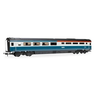 This Trailer Restaurant Un-classified Buffet ‘TRUB’ InterCity Mk3 coach is an ideal coach to add to the B.R. High-Speed Train Set. Equipped with wide tension lock couplings and moulded plastic buffers. As 1:76 scale, 00 gauge this model is ready for operation on second radius curves or greater. Finished in the distinctive white and blue Intercity livery this coach would be the perfect addition to increase the rake of coaches between the two Class 43 Diesels., Manufacturer: Hornby Hobbies LTD