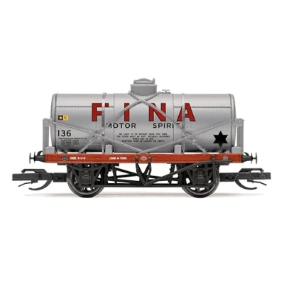 Finished in a metallic silver with the iconic red ‘Fina’ markings of Belgian manufacturer Petrofina, this 12-ton petrol tank wagon adds vintage fuel transport to your TT:120 layout. Carrying fleet number 136, it features fine detailing and an authentic design, making it a standout addition to any freight collection. Explore Hornby’s range of TT:120 scale model wagons and coaches. From Brake and Vent vans to Composite Corridors and Tourist Standard Opens, Hornby’s TT rolling stock has a vast range of models to elevate your model railway., Manufacturer: Hornby Hobbies Ltd