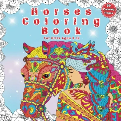 Horse Coloring Book: for Girls Ages 8 12. Relaxation and Stress Relief Pages Lovers Positive Affirmations Book Kids Real Cowgirls