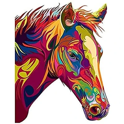 Horse Illustration Swirly Colourful Art Print Canvas Premium Wall Decor Poster