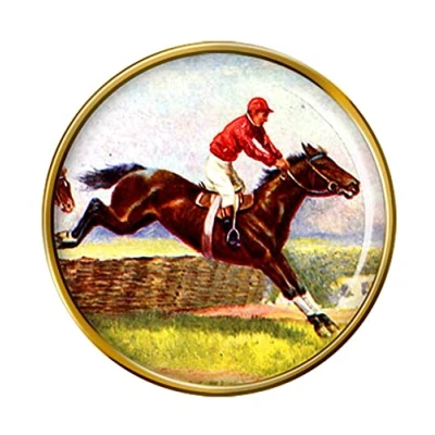 Horse Racing over Hurdles Pin Badge