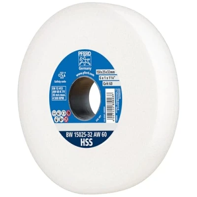 The grinding disc of the version HSS (EAN: 4007220610237) is particularly suitable for sharpening HSS drill bits or working on other high-alloy steels. The discs for double sanders impresses with a long service life, high dimensional stability and high grinding performance. Thanks to the integrated reduction sleeves, the ceramically bound grinding wheel can be mounted on almost any grinding spindle (32/25/20/16 mm). The straight grinding disc can be used for deburring, sharpening and edge processing (chamfering, rounding) of high-alloy steels. Box contents: 1 x Abrasive Disc HSS from Hord, with 150 mm diameter and 25 mm width, bore diameter: 32 mm, abrasive: precious corundum (AW), grain size: 60, hardness level: K, joint density: 7 + reducing sleeves., Weight: 2.14767 Pounds, Manufacturer: August Rüggeberg GmbH & Co. KG