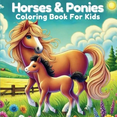 Horses and Ponies Coloring Book For Kids: 52 Fun illustrations Kids Age 6 12