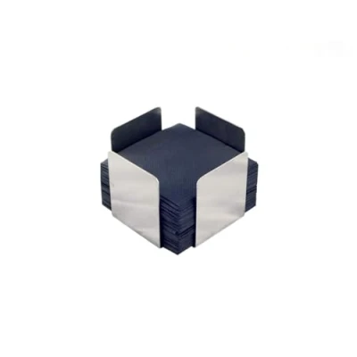Silver stainless steel napkin holder. Highly resistant to bumps and drops. They bring elegance and comfort to your table. Includes 50 black micro-dot napkins. napkin holder