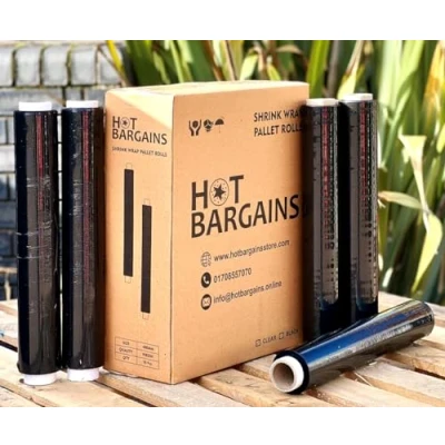 HOT BARGAINS 6 x Pallet Wrap Black Heavy Duty 400mm 250m 25mu Stretch Shrink Rolls (Pack of Rolls)