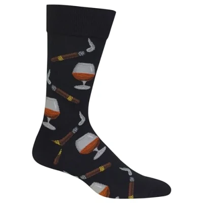 Hot Sox Men's Fun Cocktail Drinks Crew Socks 1 Pair Pack Happy Hour Cool & Funny Novelty Gifts Dress, Cognac and Cigars (Black), 4.5 12 UK