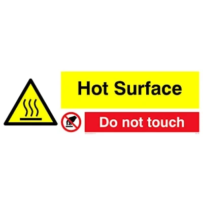 W017 : Hot surface,P010 : Do not touch This sign is made from vinyl high tack A stickier sticker. Uses a stronger adhesive to make it more suitable for plastic surfaces like Wheelie Bins or where the sticker might get rubbed. 31 landscape Sign Text: Hot Surface Do Not Touch