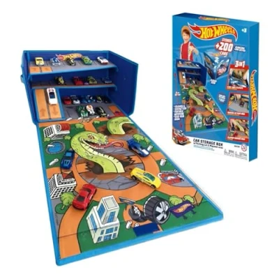 Hot Wheels cars Case Garage Box Playmat Car Toys Storage with Speed Roads, 3 IN 1 Collapsible I Toy Storage. Stores +200 (Cars Not Included)