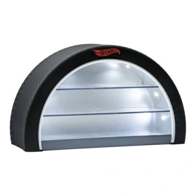 Unique Wheel Design: The display case is shaped like half a car tire, adding a stylish and themed touch to any room. It's a perfect fit for Hot Wheels enthusiasts and collectors. Holds Up to 8 Cars: The 26cm (10.2") wide case can store up to 8 Hot Wheels cars, allowing you to showcase your favorite models in a captivating way (cars not included). Wall Mountable or Freestanding: Mount it on the wall to save space or place it freestanding on a desk or shelf. The choice is yours, offering flexible display options for your collection. LED Light-Up Feature: Illuminate your collection with the built-in LED lights. Power the display case with the included USB cable or use 3x AA batteries (not included) for added convenience. PALADONE: At Paladone, we specialize in fun gifts for fun people. Our officially licensed merchandise includes top-selling toys, decor, and unique items that bring joy to all nostalgic pop culture enthusiasts. Discover magical gifts that make every fan's collection.