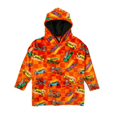 Hot Wheels Hoodie For Kids Boys Oversized Soft Fleece Blanket Sherpa Hood Lining Car Gift One Size Fits All Age 4 10 Years Orange