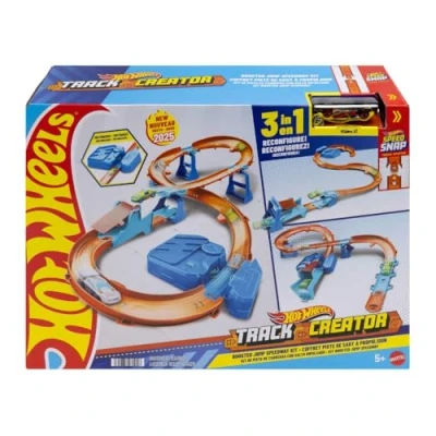 Race into an epic Hot Wheels track build with a deluxe Track Creator set featuring a motorized booster and 1:64 scale Hot Wheels car Kids can create at least 3 unique builds with all the essentials in the Boosted Jump Speedway set and experiment with unique alterations and layouts The motorized booster puts 1:64 scale vehicles into motion and propels them through stunts and around the track Features Speed Snap track that make assembly easier and includes adapters for connecting to legacy Hot Wheels e-track One Hot Wheels 1:64 scale race car is included for immediate play, Manufacturer: Mattel