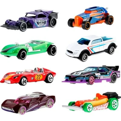 Embrace the 'Challenge Accepted!' spirit with this 8-pack of Hot Wheels 'Let's Race' toy cars and trucks! Each vehicle was showcased in the animated Netflix series 'Let's Race', which follows the high-octane adventures of next-generation of Hot Wheels racers. It may include favorites such as Dragon Blaster, Duck n' Roll, Twin Mill and Rip Rod. (Styles may vary.) Recreate favorite scenes or invent new stories inspired by Hot Wheels vehicles. All 8 vehicles are 1:64 scale and appeal to kids and collectors for either play or display. (Styles may vary.), Manufacturer: Mattel